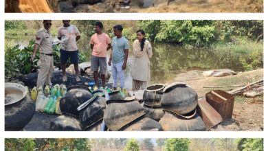 जंगल के अंदर नदी किनारे 8 अवैध शराब भट्टी पुलिस द्वारा ध्वस्त ,190 लीटर देशी शराब जप्त ,600 किलो महुआ पास का नष्टीकरण ,एक गिरफ्तार ,ऑपरेशन आघात के तहत घरघोड़ा पुलिस की ताबड़तोड़ कार्रवाई,देखिये क्या कहते हैं ए एस पी अनिल कुमार सोनी