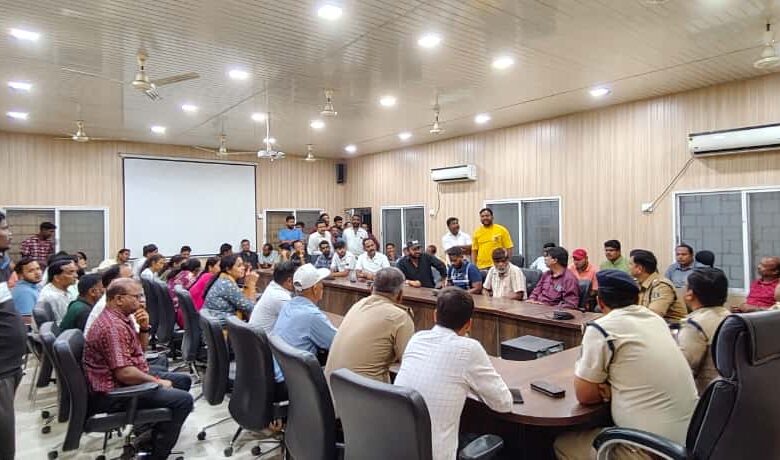 रायगढ़। आज दिनांक 10 सितंबर को पुलिस कंट्रोल रूम रायगढ़ में प्रशासन, पुलिस और नगर निगम अधिकारियों की संयुक्त उपस्थिति में शहर के दुर्गा आयोजन समितियों के साथ शांति समिति की बैठक आयोजित की गई। बैठक की अध्यक्षता अतिरिक्त पुलिस अधीक्षक श्री आकाश मरकाम ने की। उन्होंने एक-एक कर सभी आयोजक समितियों से उनके कार्यक्रमों की जानकारी ली और माता दुर्गा की प्रतिमा स्थापना से लेकर विसर्जन तक की व्यवस्थाओं पर विस्तार से चर्चा की।