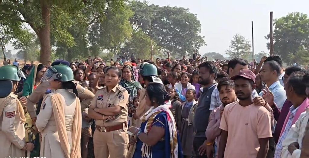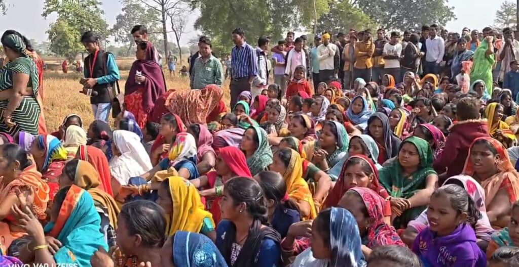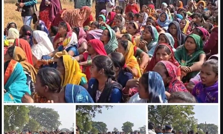 सारँगढ़ के कपिस्दा में पांच गांव के ग्रामीण महिला पुरुष जनसुनवाई के विरोध में धरने पर बैठे,ग्रीन सस्टेबल कंपनी की जनसुनवाई नहीं कराने पर अड़े,तीन जिलों से पुलिस बल तैनात