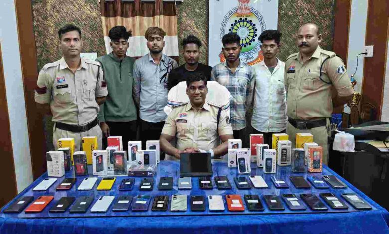 रायगढ़ 30 मार्च। वरिष्ठ पुलिस अधीक्षक श्री शशि मोहन सिंह के दिशा निर्देशन में रायगढ़ पुलिस ने एक संगठित आपराधिक गिरोह का पर्दाफाश करते हुए मोबाइल दुकान चोरी और दो बैंकों में लूट के असफल प्रयास में शामिल *5 आरोपी युवक एवं 1 विधि से संघर्षरत बालक* सहित कुल 6 आरोपियों को गिरफ्तार किया है। आरोपियों के कब्जे से दो चारपहिया वाहन, 60 मोबाइल फोन सहित लगभग 26.47 लाख रुपये की संपत्ति बरामद की गई है।